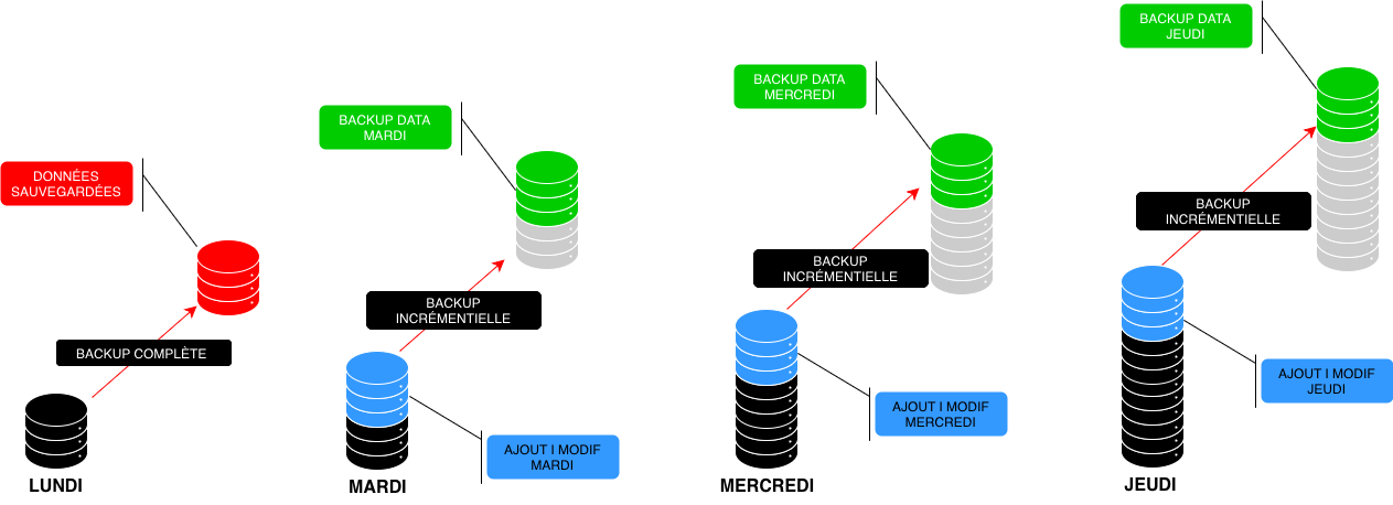 Sauvegarde incrémentielle | Sauvegarde différentielle |